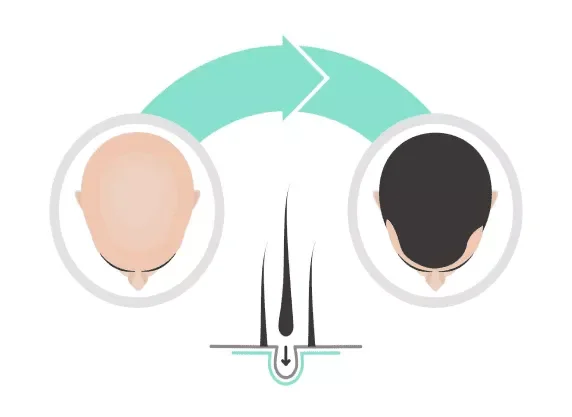 - Regeneration – The growth factors activate stem cells in hair follicles while enhancing blood flow to stimulate natural hair growth.