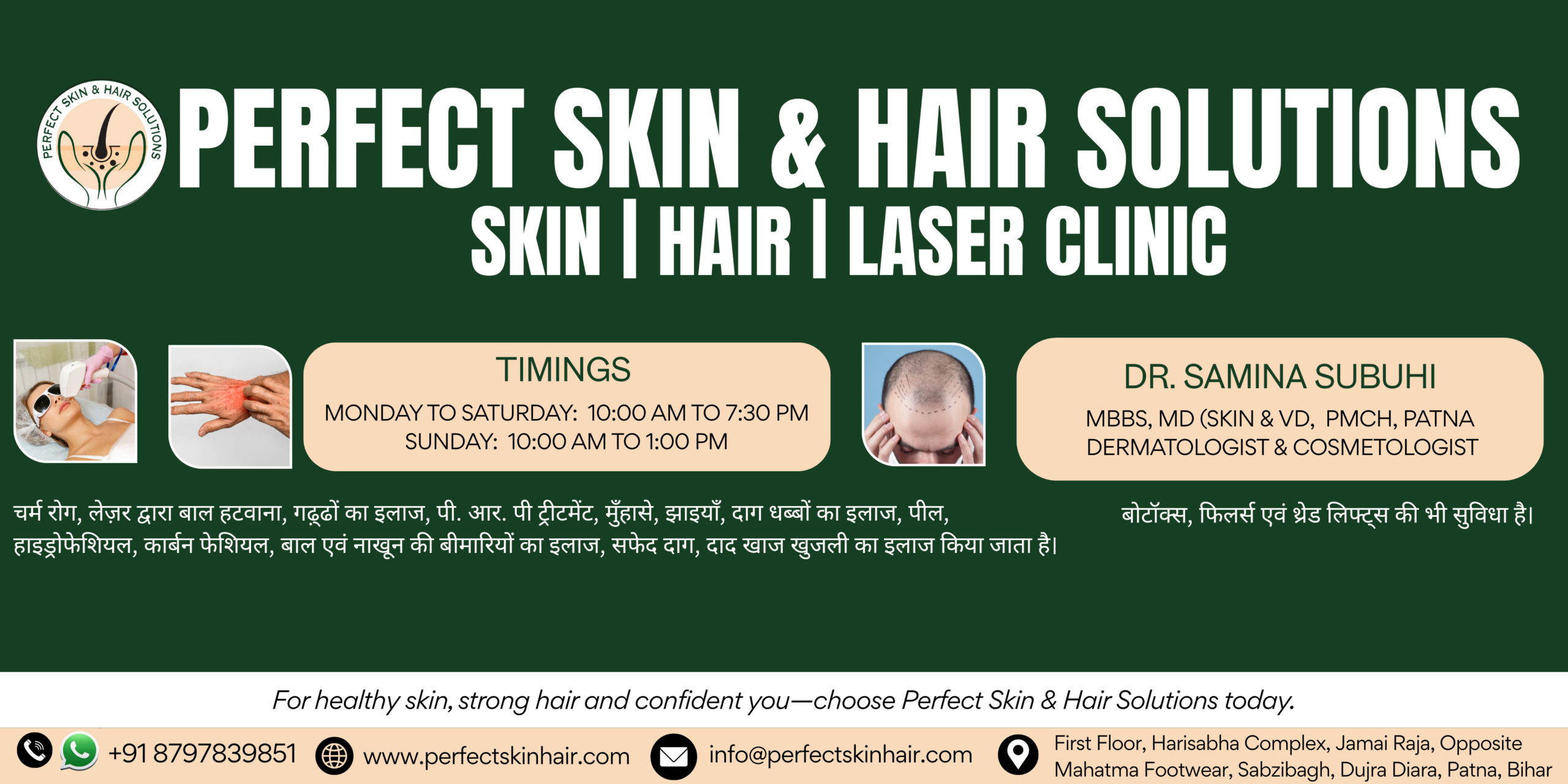 If you’re searching for PRP treatment near me, look no further! Perfect Skin & Hair Solutions Clinic is the leading dermatology clinic in Patna offering exceptional services with proven results.